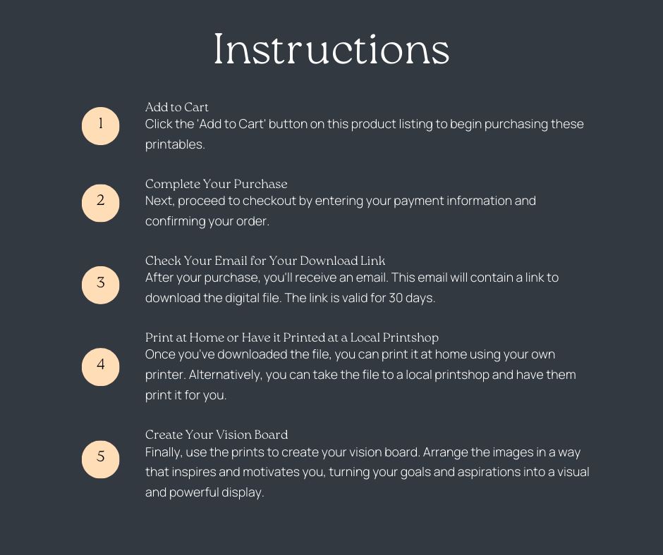 This downloadable printable kit provides everything you need to create a powerful and inspiring vision board, featuring: